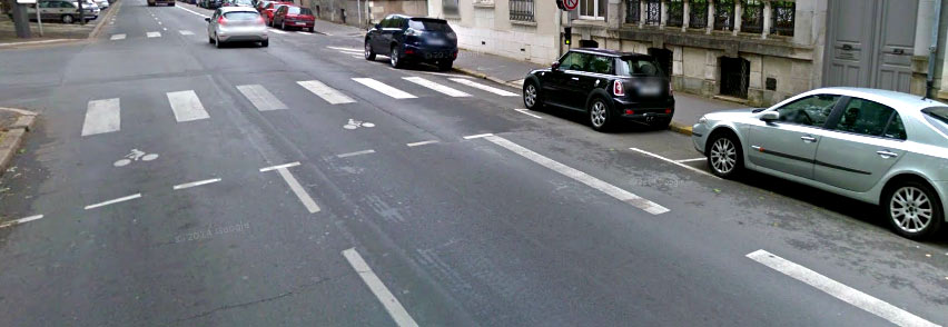 Aïe, le sas ! La ligne d’arrêt matérialisée, celle s’adressant aux véhicules à moteurs, a été (largement) franchie par cette voiture grise.